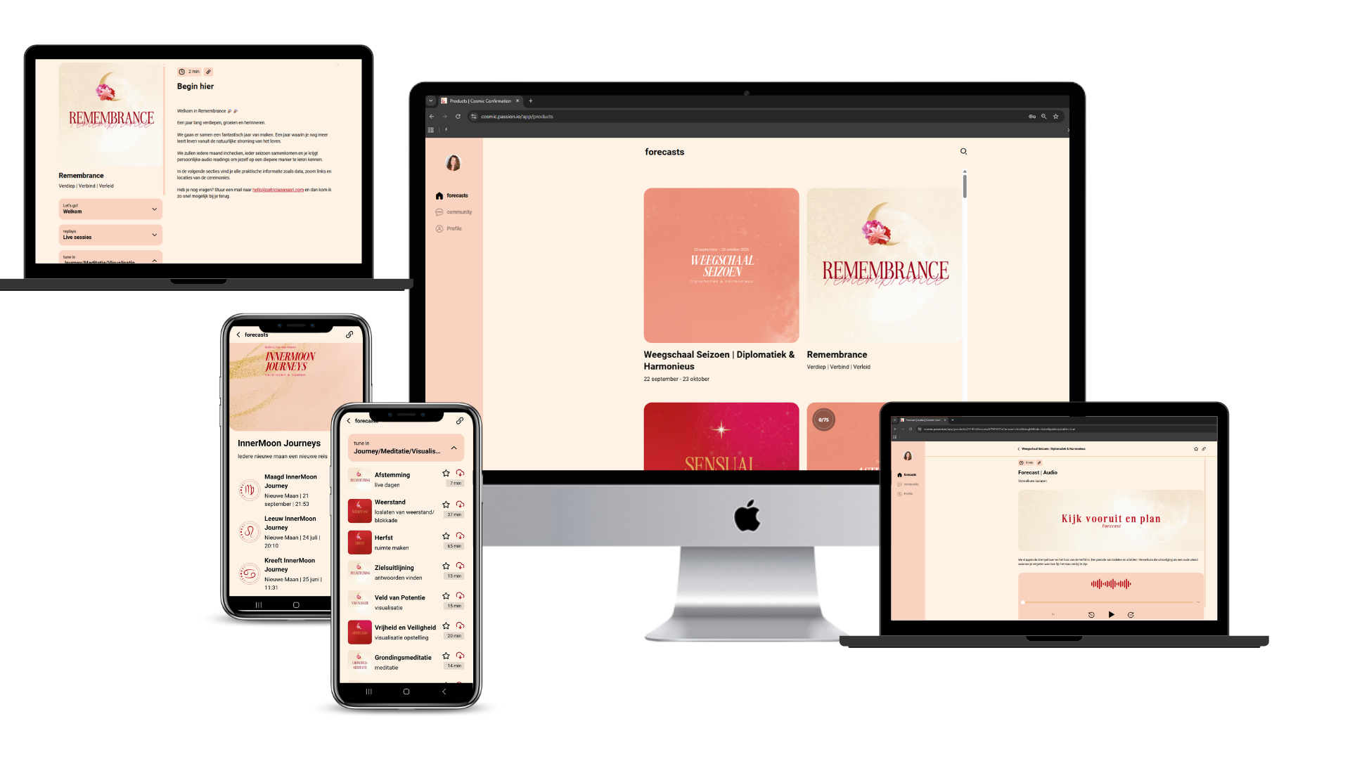 Dagelijkse forecasts + verdiepende trainingen + InnerMoon Journeys per nieuwe maan.